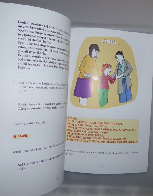 Če česa ne razumemo, je to kaj hitro lahko odveč in prav pošteno dolgočasno. Se strinjamo? Da se otrokom in vnukom to ne bi dogajalo pri maši, ampak bi jo lahko bolje razumeli in globlje doživljali, nam pisec naproti pošilja prijaznega župnika Mirana. Ta z veliko mero potrpežljivosti in jasnosti, korak za korakom razloži, kje imajo mašni deli svoje mesto in zakaj prav tam, kaj pomenijo določeni simboli ter opravila in kaj izrečene besede naučenih obrazcev. In to opravi na način, da z zanimanjem prisluhnejo tudi starejši! Tukaj sta še Špelca in Zala, ki poskrbita, da je vse skupaj še bolj stvarno in zanimivo. “Dolgčas pri maši? – Mašna knjiga za otroke” ni suhoparni priročnik z razlago reda svete maše, ampak čudovita ura verouka, ki je zdaj lahko vedno pri roki.