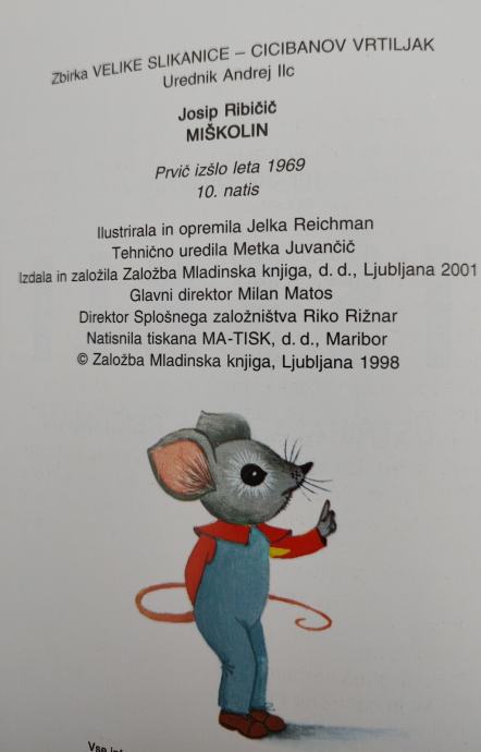 MIŠKOLIN, JOSIP RIBIČIČ, ILUSTRIRALA: JEKLA REICHMAN, MK 2001, ZBIRKA: VELIKE SLIKANICA - CICIBANOV VRTILJAK, 10. NATIS,