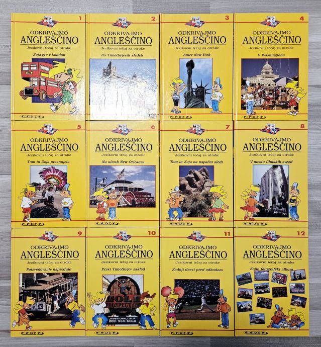 Prodam komplet 12 knjig ODKRIVAJMO ANGLEŠČINO - JEZIKOVNI TEČAJ ZA OTROKE, Cicero 1994, trda vezava. 195