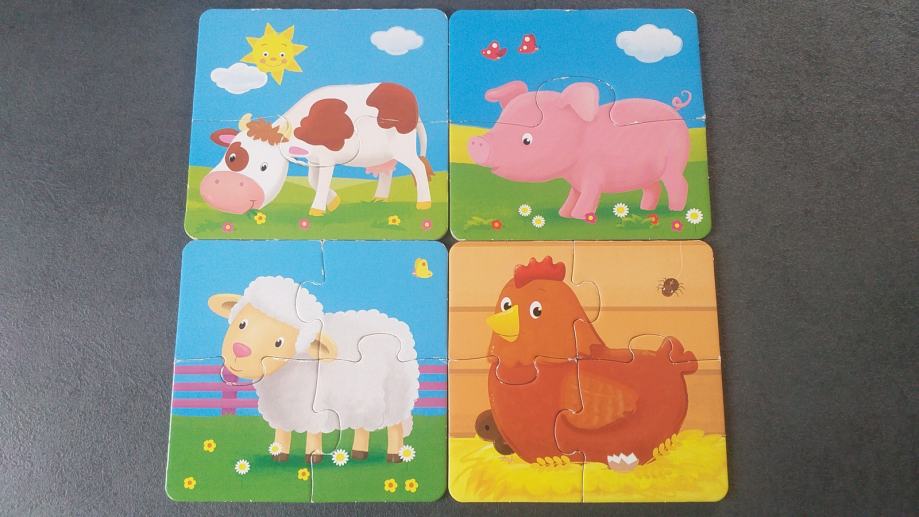 - kartonka s štirimi enostavnimi sestavljankami,