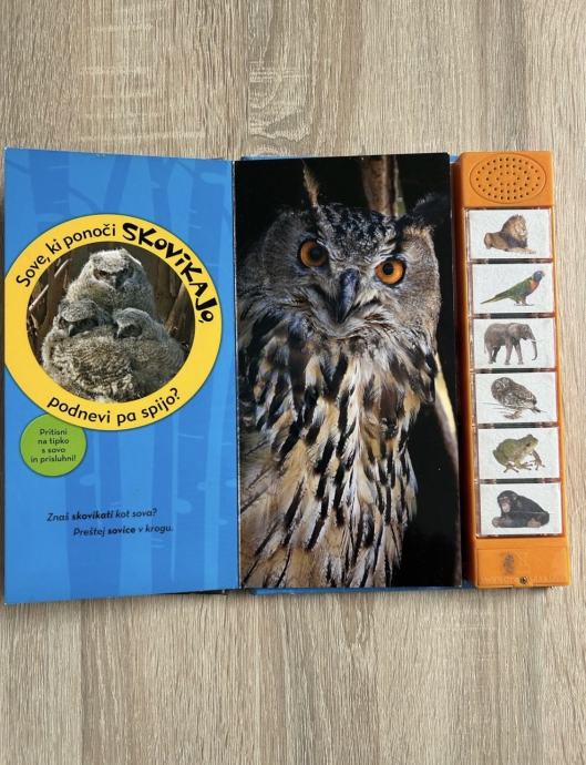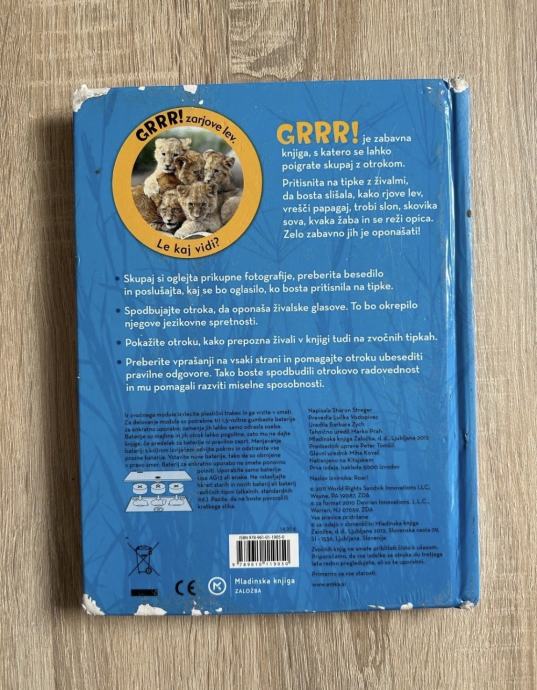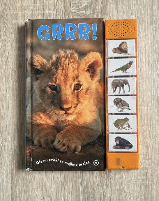 Prodam otrosko knjigo za spoznavanje zivalskih glasov z naslovom GRRR! Knjiga ima glasovne gumbe, slikovite in preproste tekstovne opise. Baterije so prazne ampak jih je enostavno zamenjati.