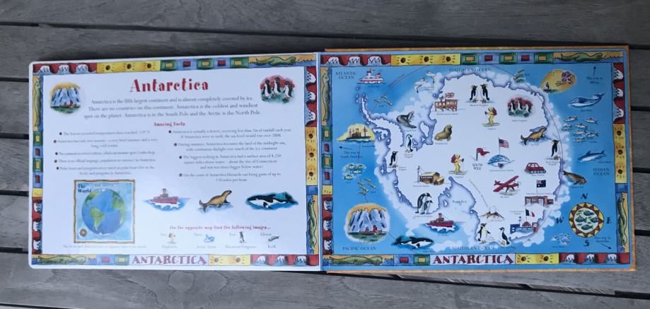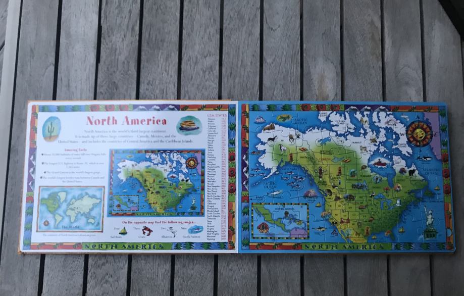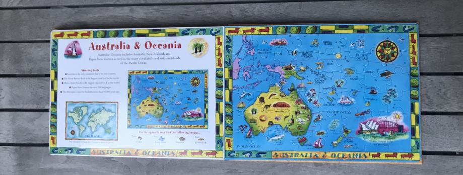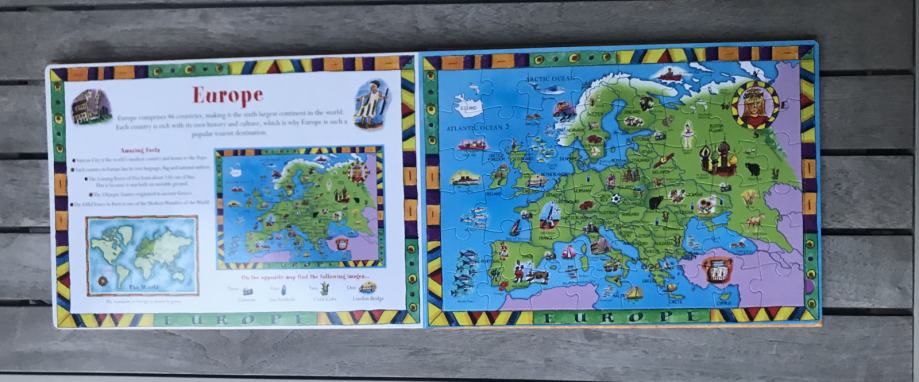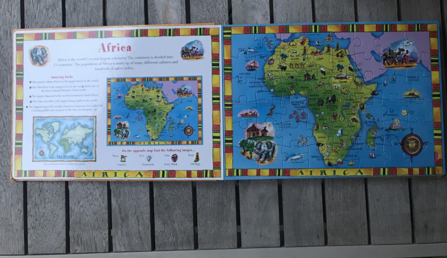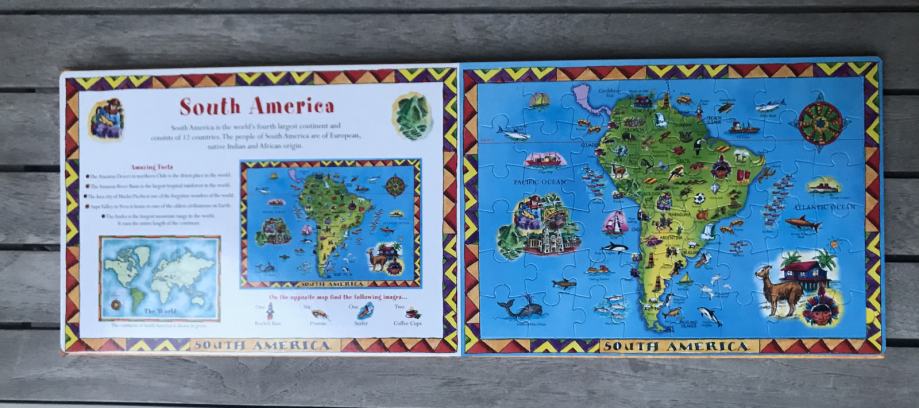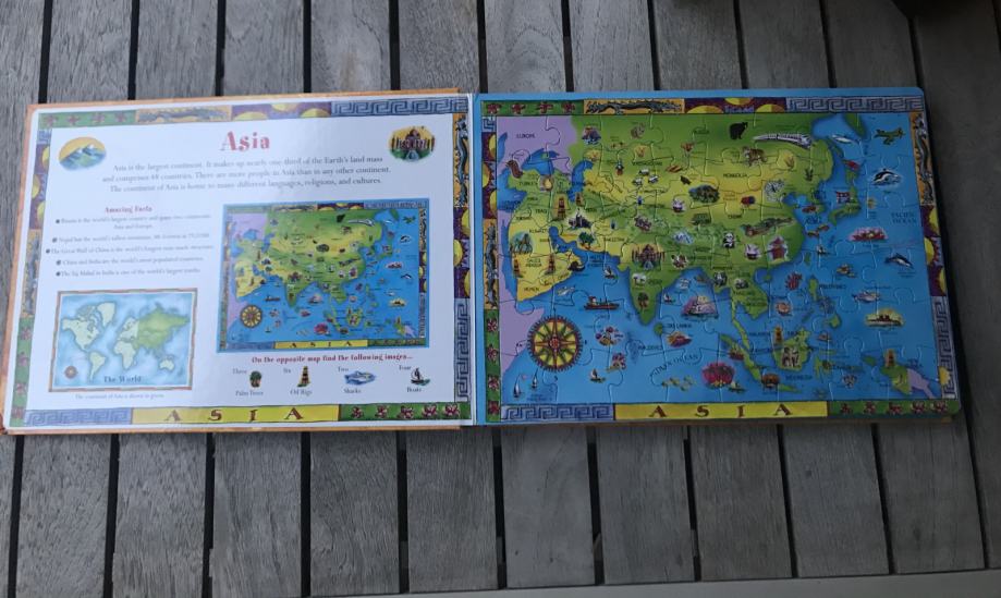 Izjemno zanimiva in poučna knjiga v obliki sestavljank, vsak kontinent svoja sestavljanka ( puzzle), v angleškem jeziku, prvi lastnik, nekadilci. Podaljšan A4 format. Knjiga je težka preko 1kg.