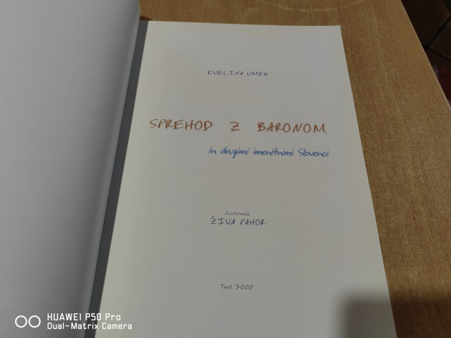 Naslov Sprehod z baronom in drugimi imenitnimi Slovenci / Evelina Umek ; ilustrirala Živa Pahor ; [fotografiral Andrej Kajzer]