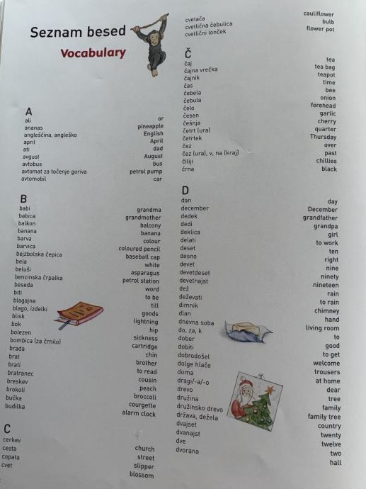 Na koncu knjige je še seznam besed v angleščini preveden v slovenščino.