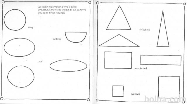 Predpogoj za dobro risanje je natančno in zavestno opazovanje. V naši okolici so skrite enostavne osnovne oblike kot so krog, trikotnik, pravokotnik, kvadrat in oval. Kdor jih zmore videti, ne bo imel težav pri risanju zapletenih predmetov ali rastlin in kasneje tudi živali ter ljudi.