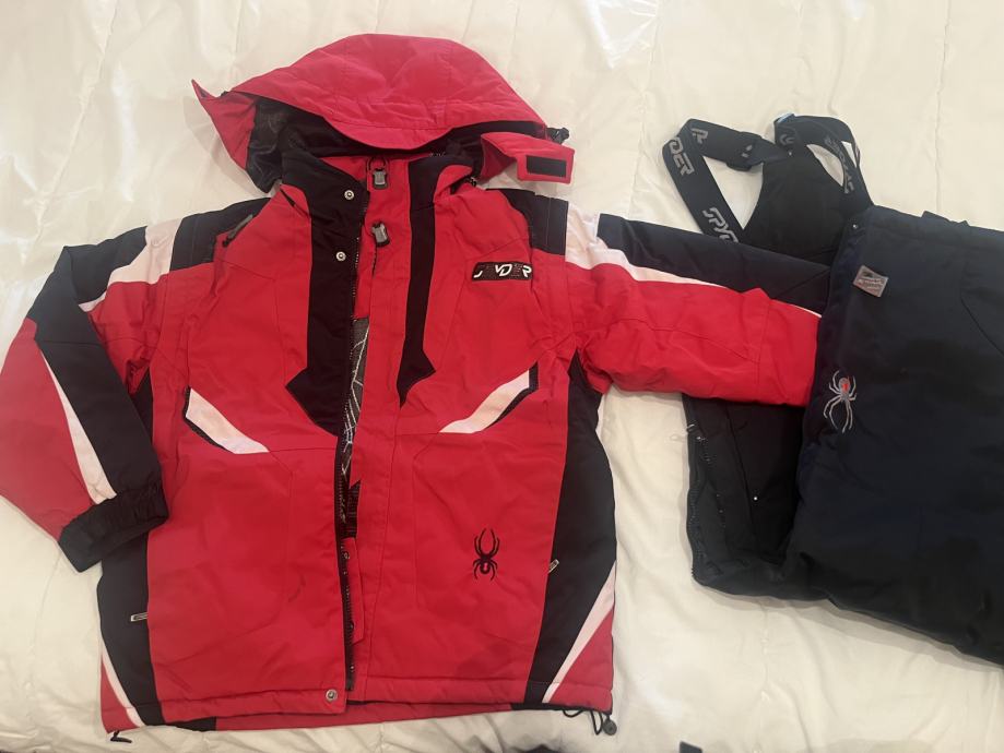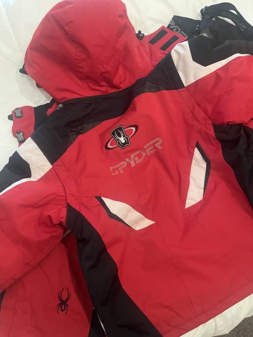 Spider smučarski kombinezon za otroka 10-15let, zelo kvaliteten, topel in atraktiven komplet s kvalitetnimi in močnimi zadrgami. Kapuca je ločljiva. Hlače imajo ob strani zadrgo do vrha in se lahko oblečejo/slečejo tudi kasneje čez pancarje. Komplet je kot nov; kupec bo zelo zadovoljen!