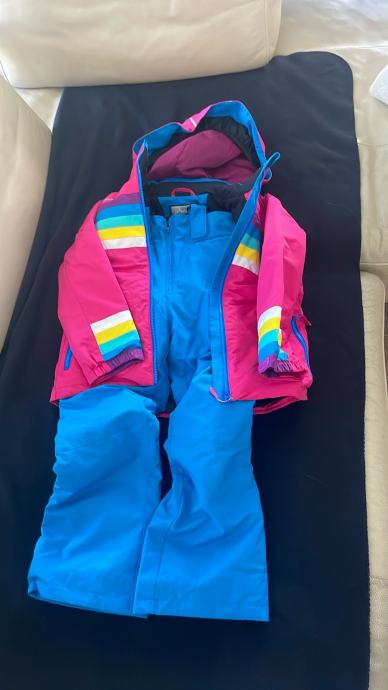 Izredno lepo ohranjen komplet, v roza modri barvi z dodatkom pisanih črt. Izredno lep! Primeren za deklico. Kot nov. Možnost regulacije velikosti, od 8-12 let.