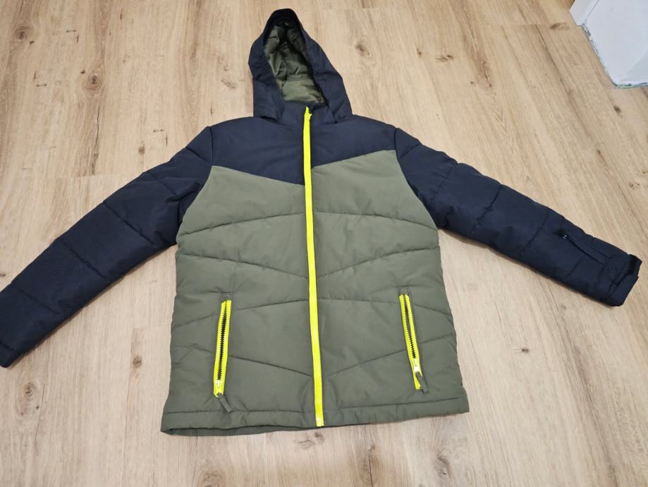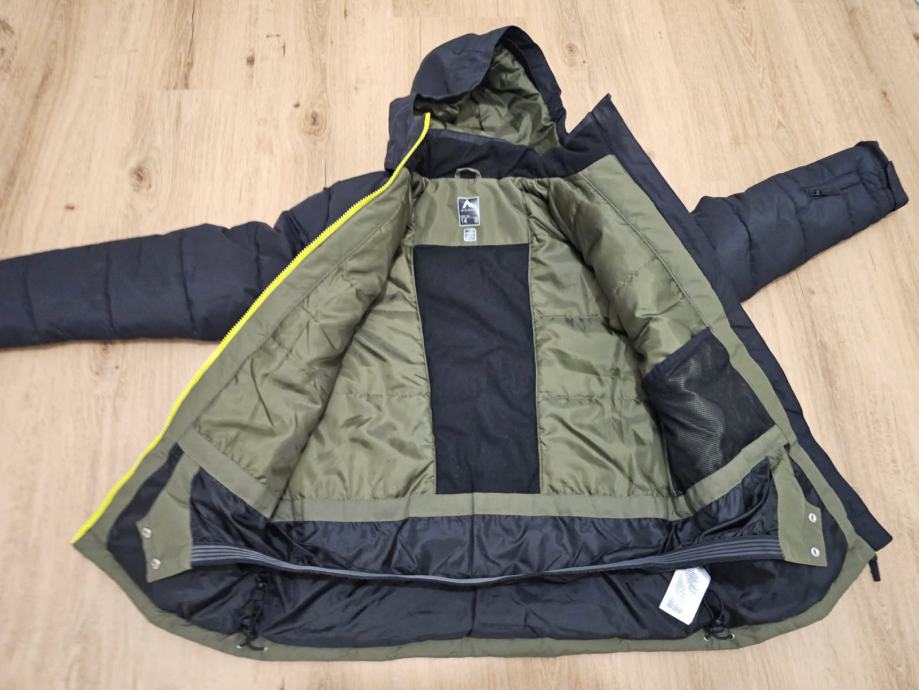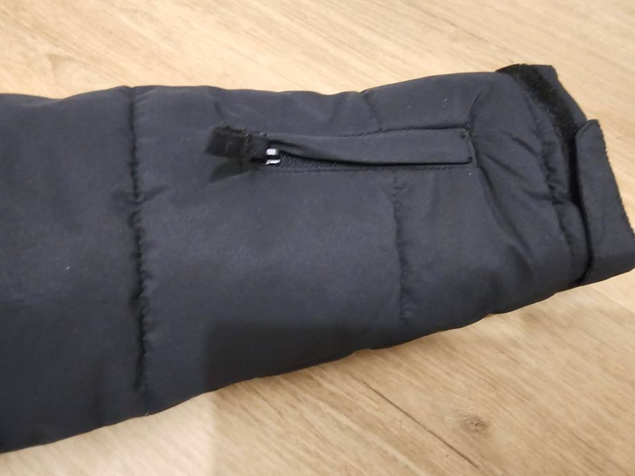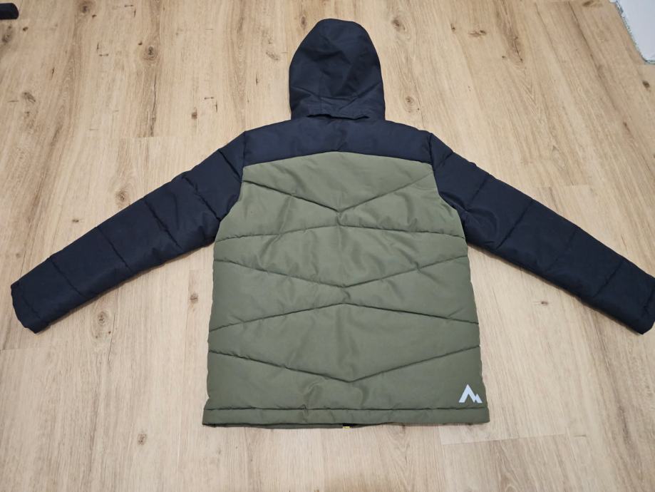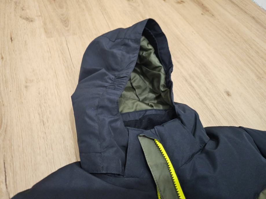 Kapuca je snemljiva, jakna podložena. Ježki na rokavih brezhibni.