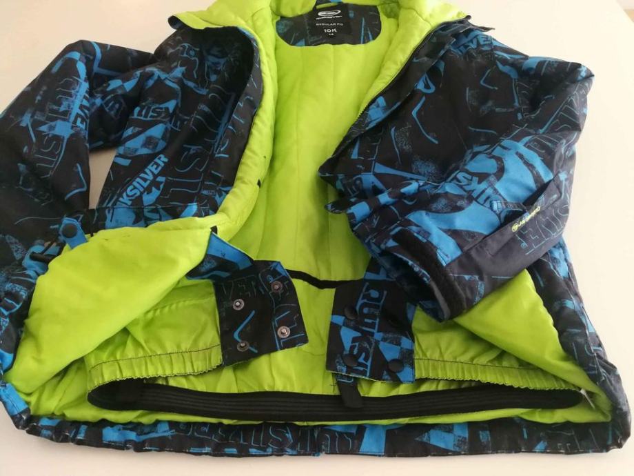 -Smučarska jakna znamke Quiksilver, št.14, regular fit, vodoodporna z lepljenimi šivi, visoka10K zračnost in enako visok vodni stolpec, nastavljiv obseg zapestnikov, odstranljiva kapuca, žep na rokavu za smučarsko karto, snežna manšeta v predelu bokov, notranji mrežasti žep