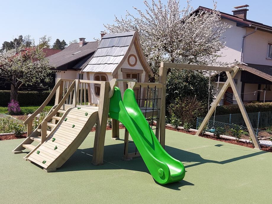Lesena igrala, otroška hiška, zunanja igrala, tobogan, otroška igrala