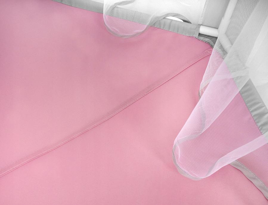 SPECIFIKACIJA – starost: od 3 let; certifikati: CE, EN71; barva: siva / roza; material: poliester, plastika; mere (dolžina / širina / višina): 123/123 / 140cm; teža: 1,5 kg.