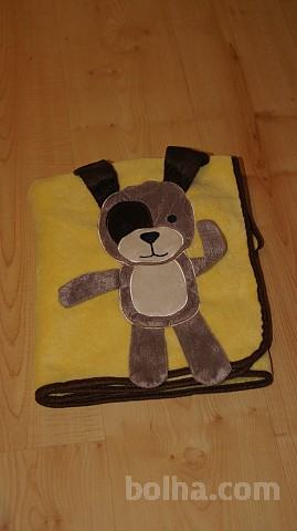 Zelo malo rabljena, kot nova. Mehka in topla. Nežno rumena z rjavim medvedkom in rjavim robom.