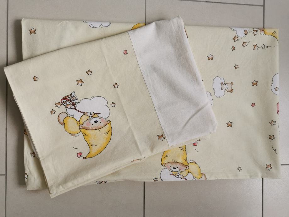 Odeja za otroško posteljo, mere 110x75. Kot nova. Zraven je tudi posteljnina, prevleka za vzglavnik in enaka obroba za posteljo, ki je primerna za posteljo 120x60.