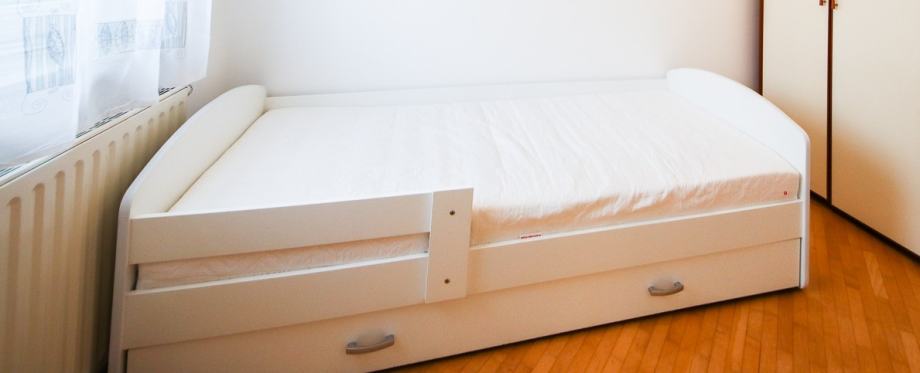 Bela otroška postelja dimenzij 200 x 90 cm.