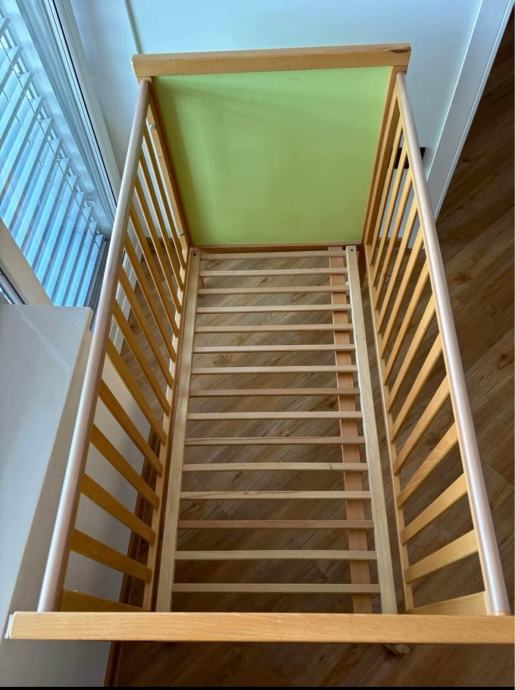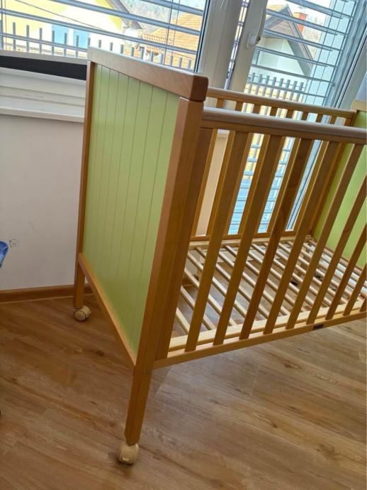 otroska posteljica na koleščkih , 120x 60, 3 nastavljive višine, zelo lepo ohranjena. slovenski proizvod.