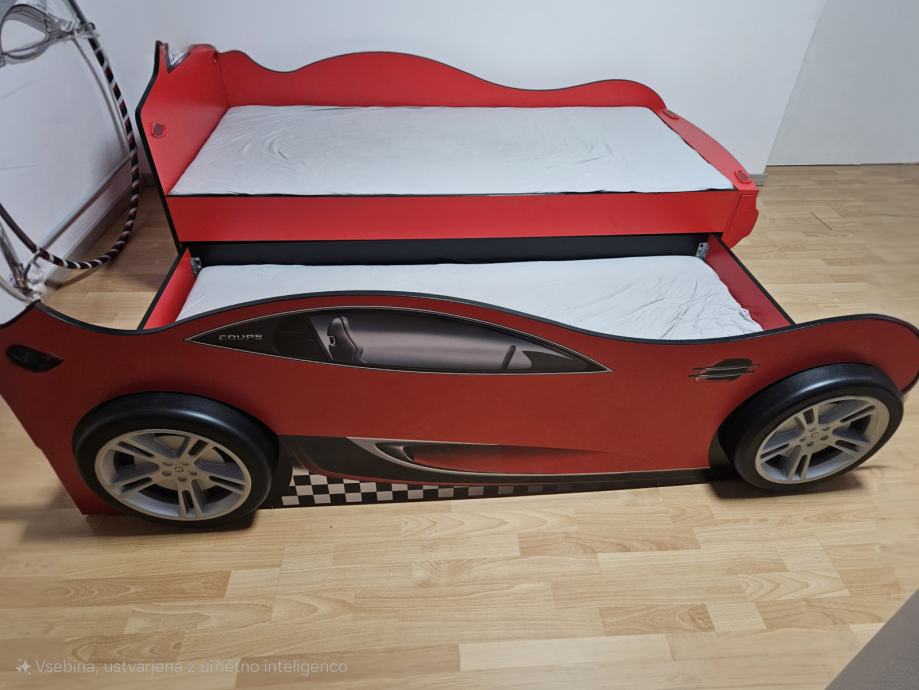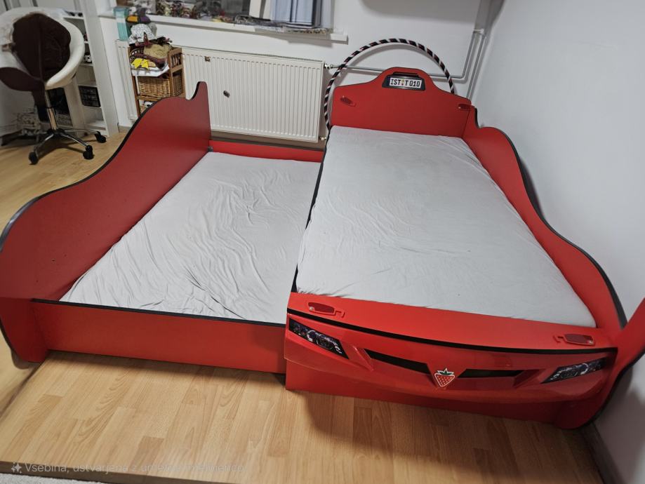 Prodamo otroško posteljo z 2 leẓ̌išči (2x 90x200 cm), izvlečno ležišče, z vzmetnicama, vse skupaj rabljeno 2 leti, zelo ohranjeno. Zelo enostavno za uporabo in vzdrževanje. Cena: 250 € (zadnja cena!). Info: 041/211-234