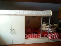 OTROŠKI POGRAD MASIVA LEZISCE 90X200CM, Z VGRAJENO OMARO IN PREDALNIKOM,BREZ JOGIJEV,
