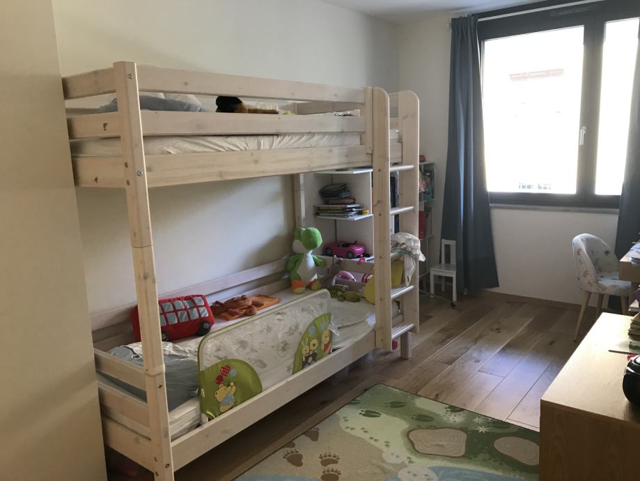 Prodam dobro ohranjen pograd flexa, ki se lahko razstavi v dve postelji širine 90 cm, dolžine 200 cm. Zraven dodam še elemente, ki omogočajo, da se ena postelja dvigne višje in se spodaj lahko uporabi prostor za igro, pisalno mizo itd. Pograd je iz masivnega lesa, beljen. Letvice so integirane, dobite dve lestvi. Prevzem možen v Ljubljani. Nov pograd Flexa stane 1.180 eur.