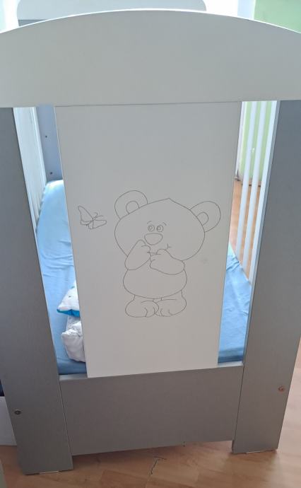 Na sliki brez dveh srednjih letvic, so seveda dodane zraven. Odstrani se jih ko je otrok dovolj velik.