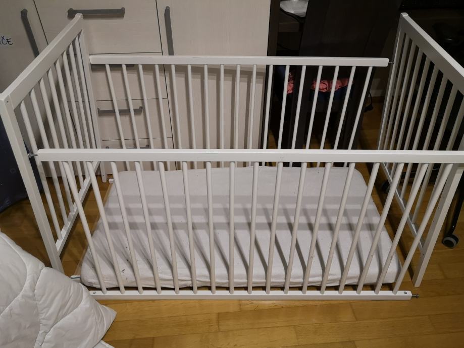 Prodam otroško posteljico skupaj z jogijem, blazinami in odejo skupaj s posteljnino. Velikost jogija je 60×120 cm, posteljica je pa še nekaj cm večja v obe smeri. Višina ograje 82 cm.