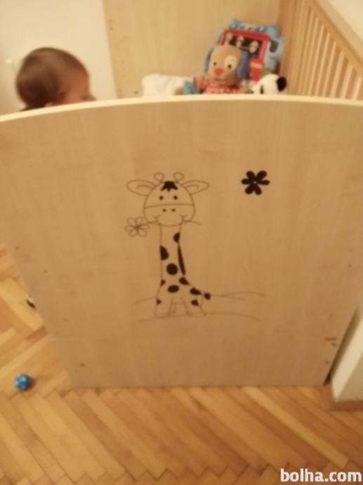 Prodamo zelo ohranjeno otroško posteljico dimenzije. Posteljo, se da nastaviti na 3 višine, ima tudi zaščitno ograjo, na robu ograje je zaščita proti grizljanju, ki je kot nova. Postelja je bila kupljena v trgovini Junior.
