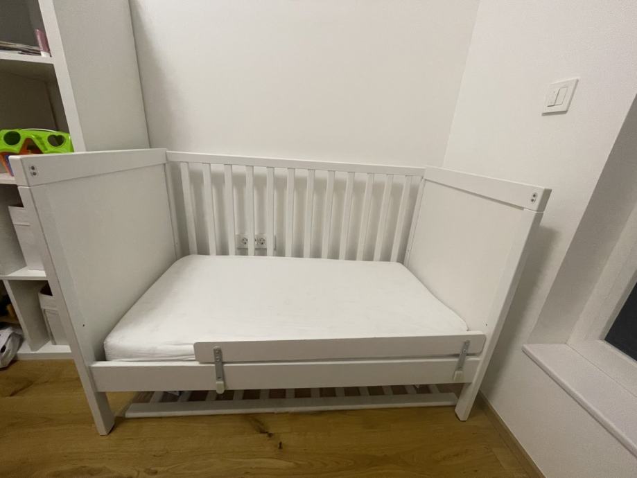 Prodamo lepo ohranjeno in nepoškodovano otroško posteljico IKEA Sundvik bele barve (60x120), skupaj z ležiščem Vitapur Junior Bamboo 60x120. Postelja ima možnost nastavitve ležišča na dveh nivojih, ter z ograjico ali brez, zaradi česar je primerna za prvih nekaj let otroka. Zraven damo tudi varovalno ograjo IKEA Nattapa, ter dve rjuhi za ležišče. Rjuhe in prevleka ležišča so sveže oprani.