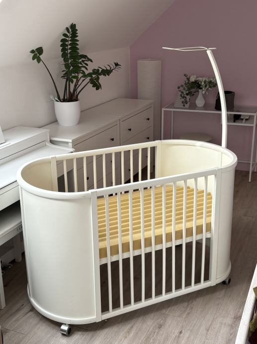 Prodam odlično ohranjeno otroško posteljico Stokke Sleepi Bed v beli barvi.