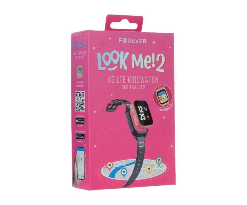 Otroška pametna ura Forever Look Me 2 KW-510, 4G LTE, 1,83, GPS + Wi-Fi + LBS, klicanje, SOS, Android + iOS, baterija, aplikacija, IP67, aktivnost, analiza spanca, roza
