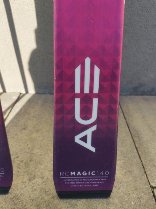 Prodamo 2 leti rabljene dekliške smuči Elan RC MAGIC 140 cm in zraven palice bele barve.