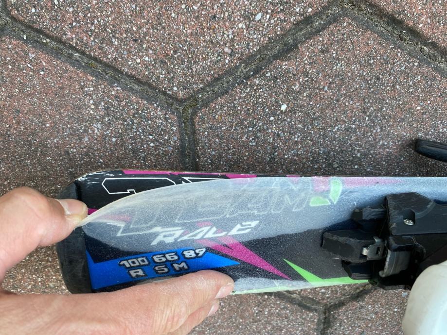 Otroške smuči 90cm, z vezmi, slabše ohranjene (zgornja plast mestoma odstopa)