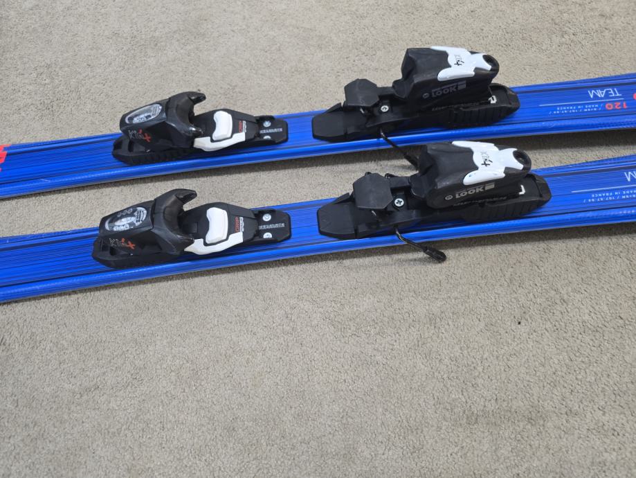 Odlično ohranjene smuči DYNASTAR z vezmi, rabljene eno sezono. Dolžina 120 cm.