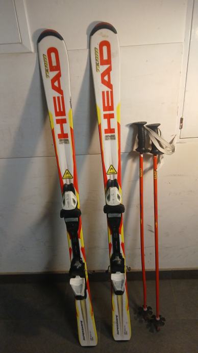 Prodam otroške HEAD team smuči, 138cm, s prilagodljivimi vezmi in podpornimi palicami.