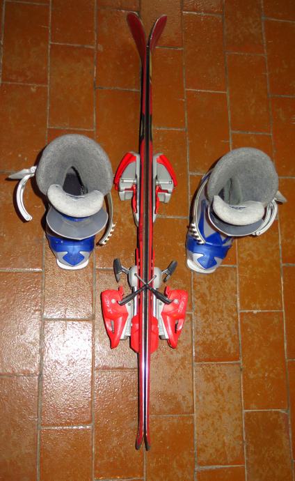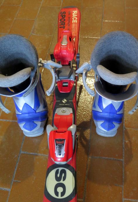 Otroške smuči dolžina 90 cm z Marker okovjem in čevlje št.27, oboje prodam za 35€.