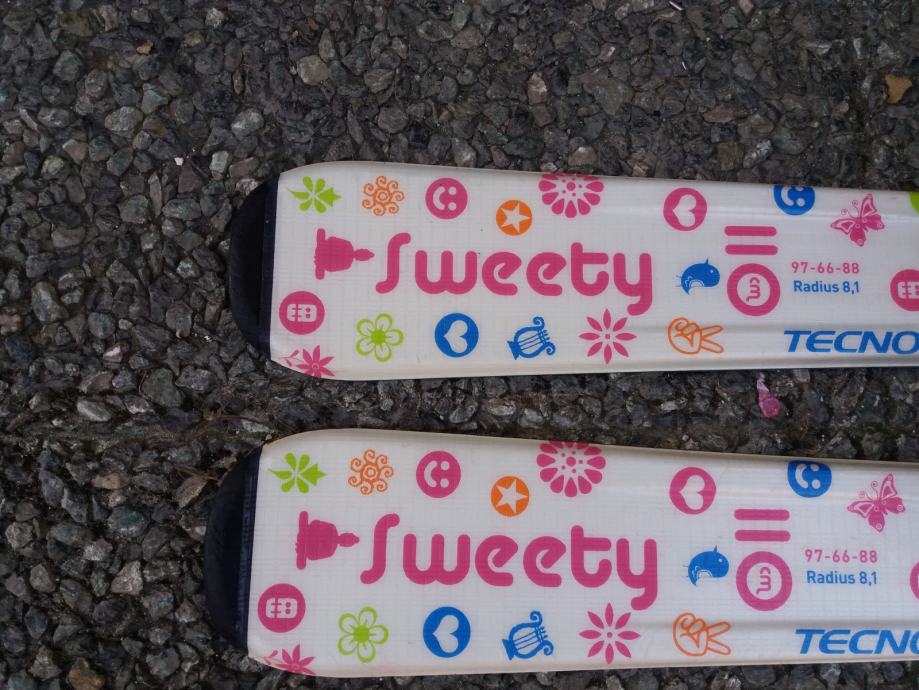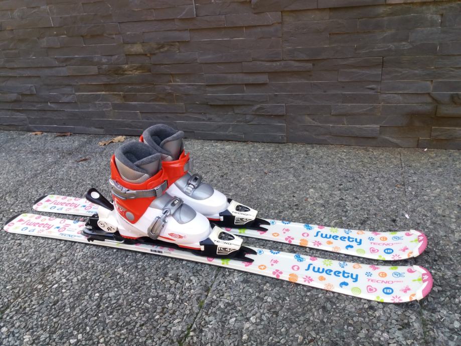PRODAM LEPO OHRANJEN DEKLIŠKI KOMPLET: SMUČI TECNO PRO SWEETY 110 cm, VEZI TECNO PRO TC 45 + SMUČARSKI ČEVLJI TECNO PRO T45 VELIKOST 30. TEL . 041 694-644