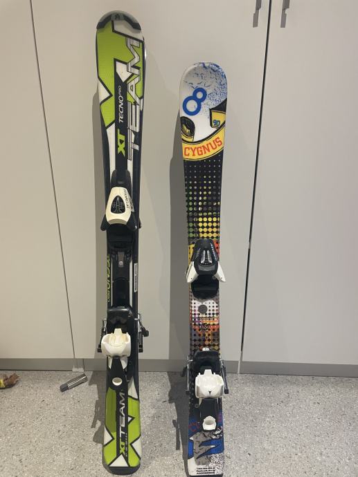 Prodam otroške smuči z vezmi: Cygnus 90cm in Tecno Pro 100 cm vsake po 40 evrov.