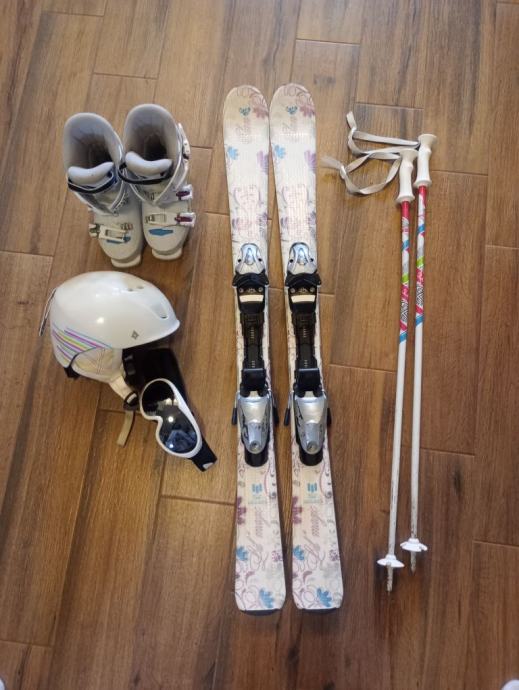Smučarski komplet deklica: 110 cm smuči, 90 cm palice, pancarji 31-32