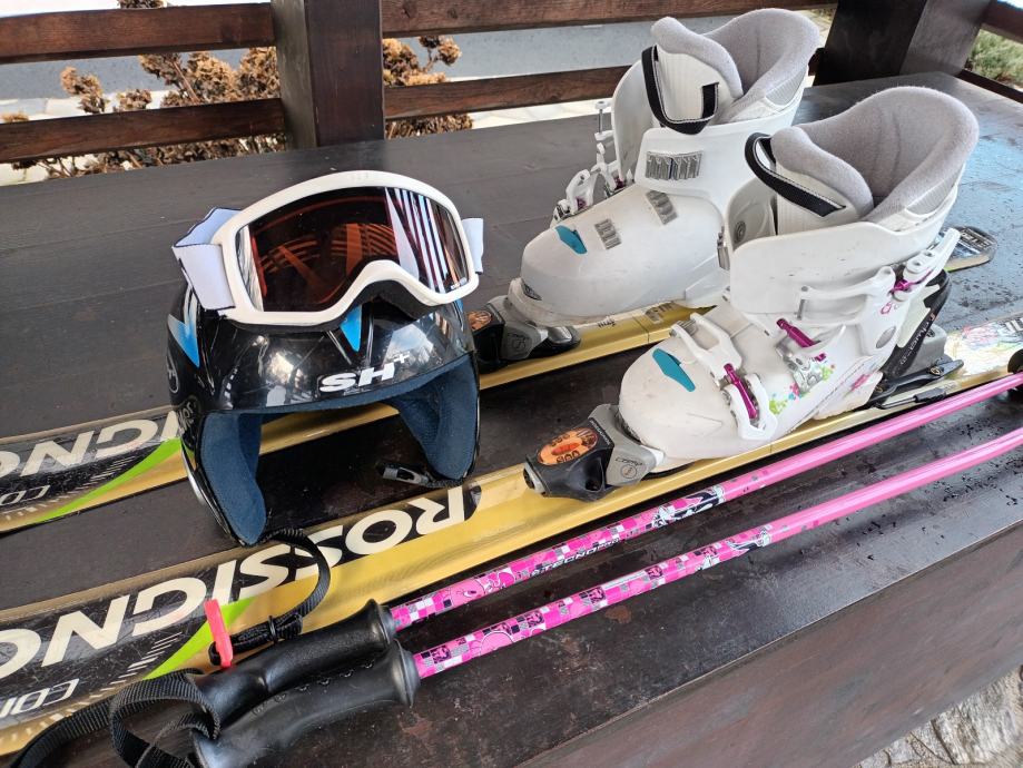 Prodajam rabljen smučarski komplet z Rossignol smučmi dolžine 120-129 cm. Komplet vključuje smuči, pancerje št. 33 ,, čelado z očali in palice. Oprema je primerna za otroke in je v dobrem rabljenem stanju.