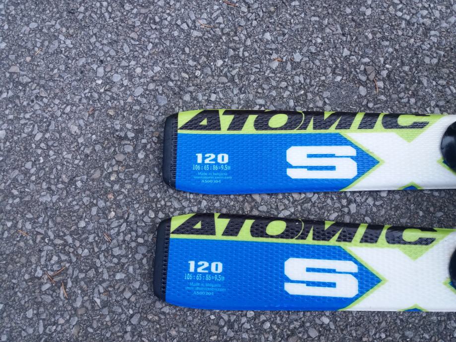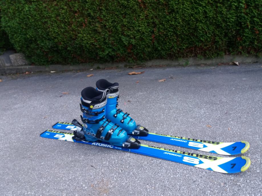 PRODAM OTROŠKI SMUČARSKI KOMPLET; SMUČI ATOMIC SUPERCROSS 7 DOLŽINE 120 cm, VEZI ATOMIC RACE 45 + SMUČARSKI ČEVLJI LANGE RACE TEAM ŠT. 37 TEL. 071 355-890