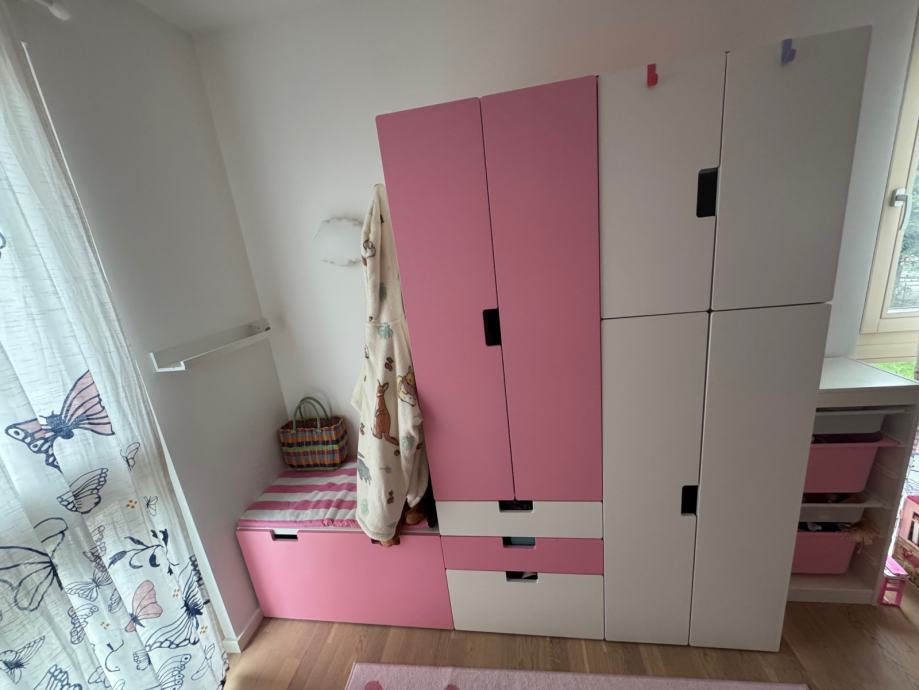 Prodamo omare STUVA, posteljo BRIMNES z vzmetnico 80x200 in 2 izvlečnima predaloma, pisalno mizo MICKE, ter stol VIMUND.