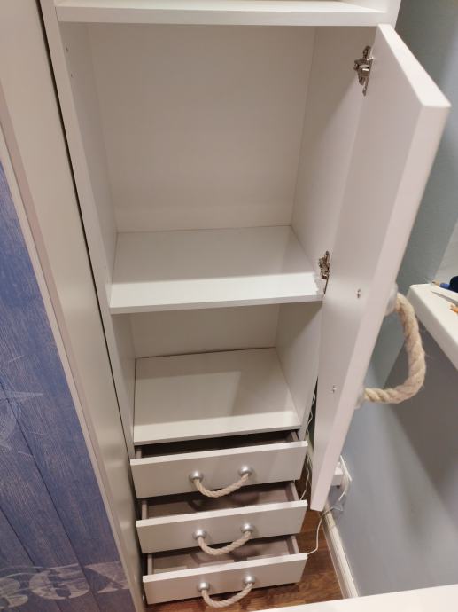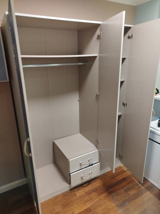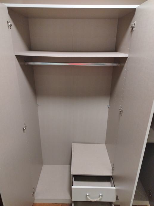 Ena stensko Montirana omara in ena vecja trodelna samo stojeca omara ter ena Samo stojeca omara