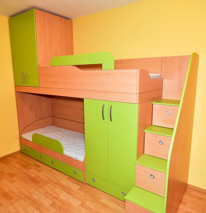Prodamo lepo ohranjeni postelji (brez poškodb) za dvojčke ali otroke z malo starostno razliko z omarami in predali.