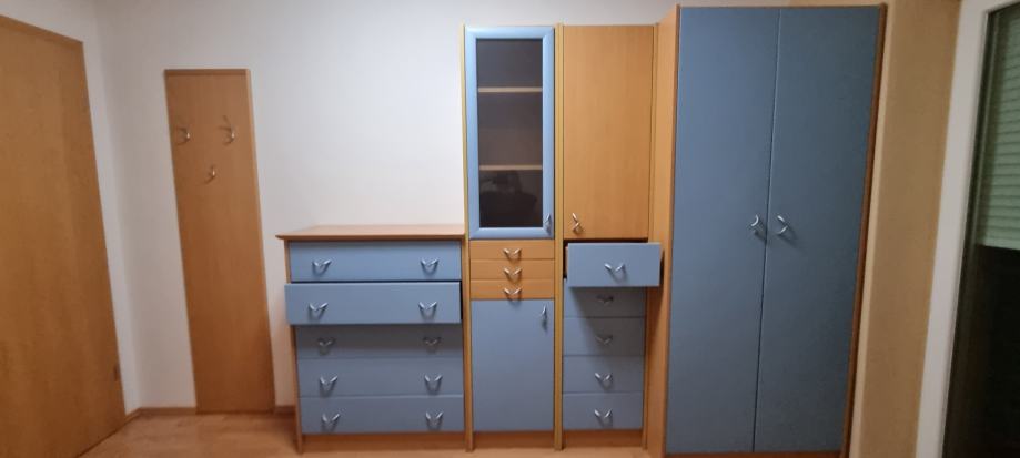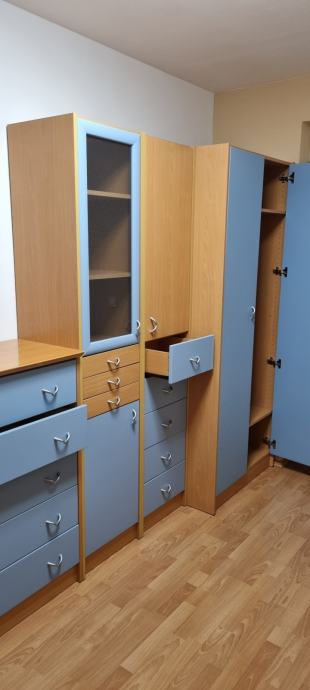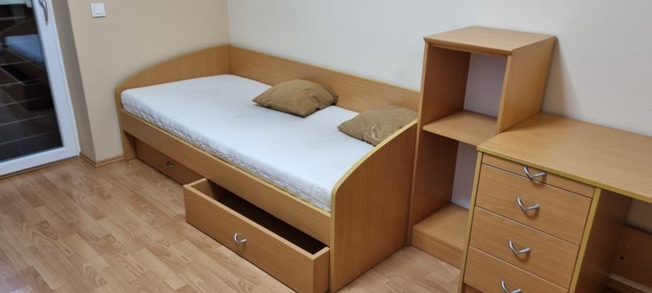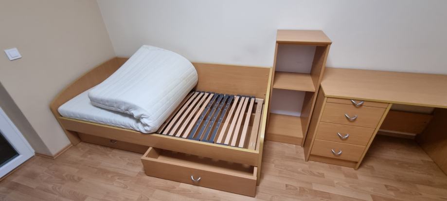 Prodam dobro ohranjeno mladinsko sobo proizvajalca Alples. Prodam v kompletu: postelja, miza in omare( 5 kos).Izgled Bukev- Modra vrata in predali.