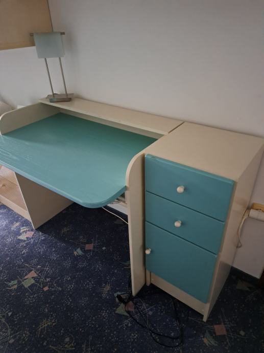Dobro ohranjena otroška soba Mali princ, postelja s posteljnim dnom za jogi 190x90cm, je primerna tudi za večjega otroka, nočna omarica, pisalna mizica z omarico ter dve omari za oblačila.