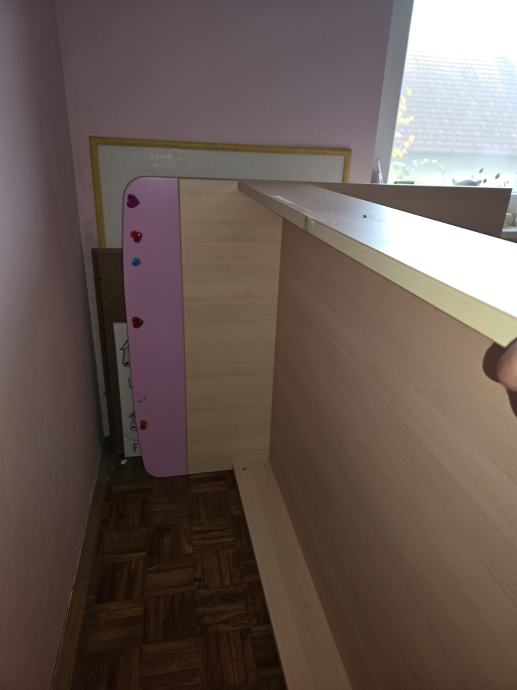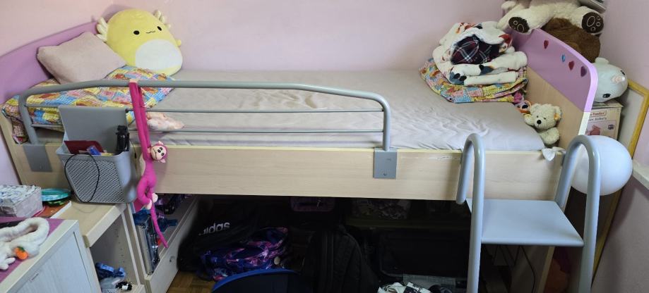 Prodamo zgoraj omenjeno posteljo skupaj z vzmetnico. Je dobro ohranjena, razen na eni stranici je malo podrsana. Zraven pripada lestev.