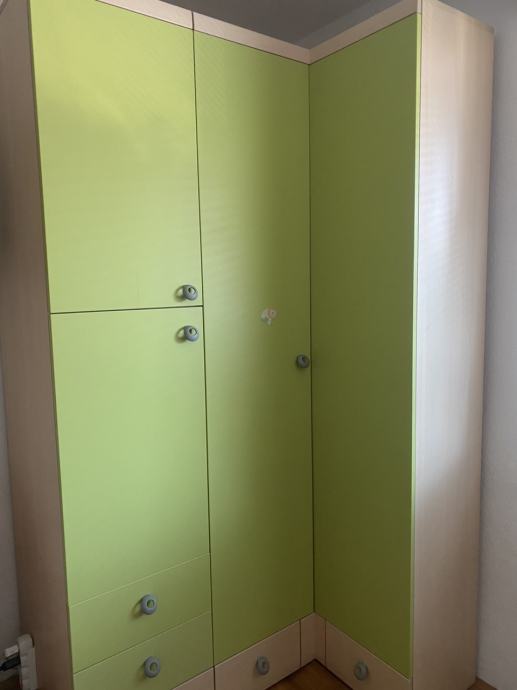 - garderobna omara v obliki črke L - višina 127,5 cm, širina daljšega dela -60 cm, širina krajšega dela-37,5cm, dolžina daljšega dela 123 cm, dolžina krajšega dela 105 cm