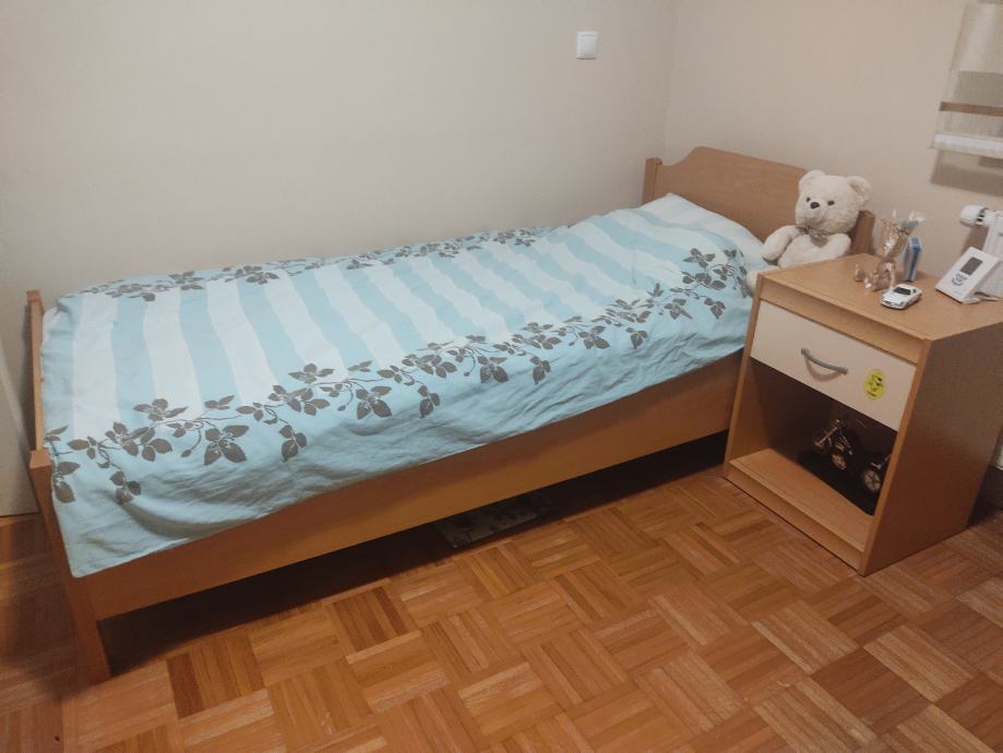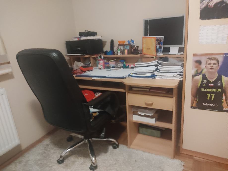 Prodamo vse v kompletu:postelja 90*200 (dno za posteljo in jogi dormeo),nočna omarica,komoda,visoka omara,pisalna miza,cena za vse skupaj 390€,vse inf:041585188,Mateja(okolica Ivančne Gorice)