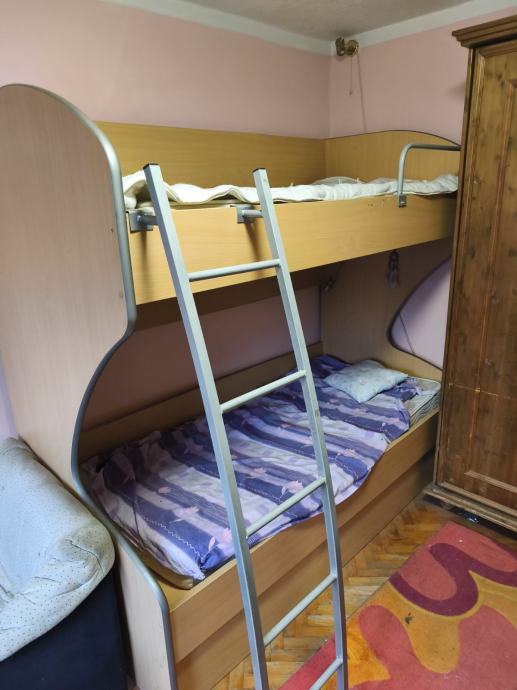 Prodajam rabljeno otroško sobo, ki vključuje pograd, leseno omaro iz masivnega hrasta, 2 pisalni mizi, vezni spojnik, predalnik s tremi predali in sedežno. Komplet je idealen za opremo otroške sobe in ponuja dovolj prostora za spanje in shranjevanje. 041 380 188 Miran