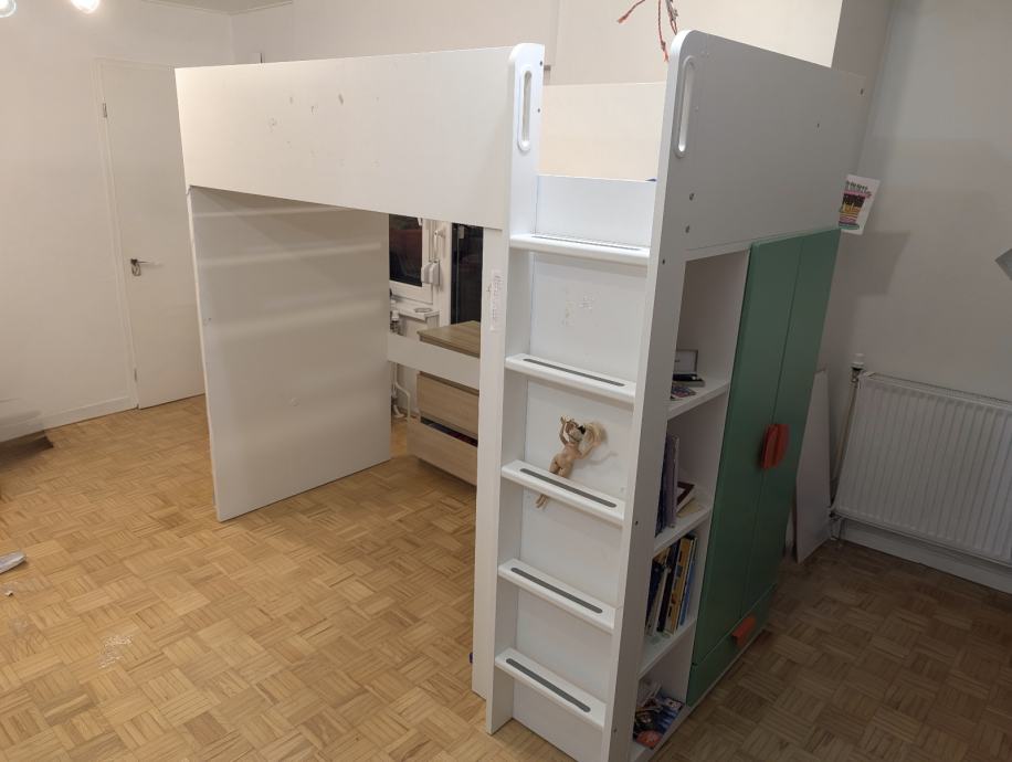 Ikea smastad komplet kot je na spodnjem linku. Rabljen z nekaj manjšimi poškodbami. Miza je lahko samostojna ali vgrajena pod pograd.