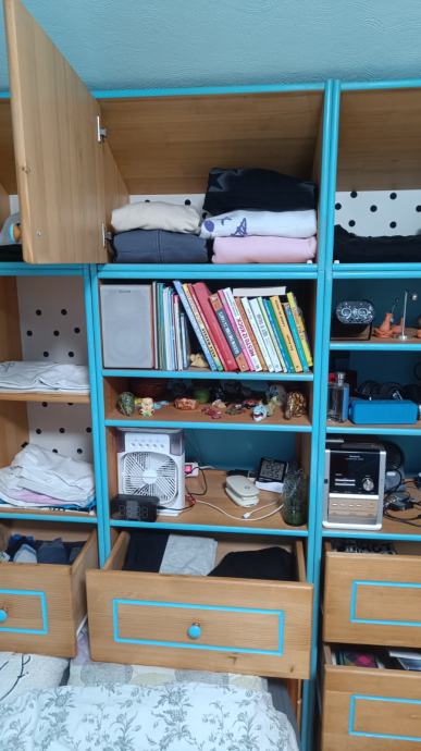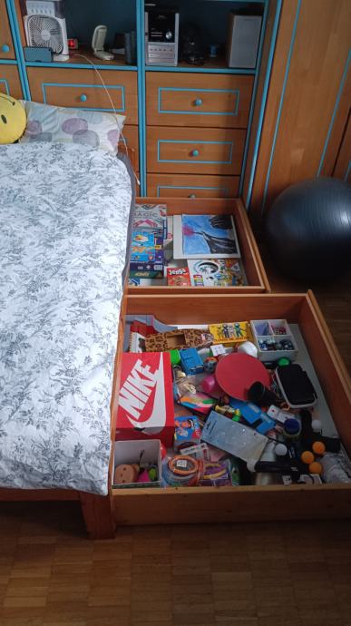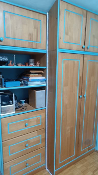 Prodam zelo lepo ohranjeno otroško sobo iz polnega lesa. Nič ni iz ivernih plošč. Zraven omar in postelje je še en uporaben poličnik , ki je tudi iz polnih lepljenih plošč. Vse je ispravno in nič poškodovano. Postelja je z dvema spodnjima predaloma in jogijem 90x200.