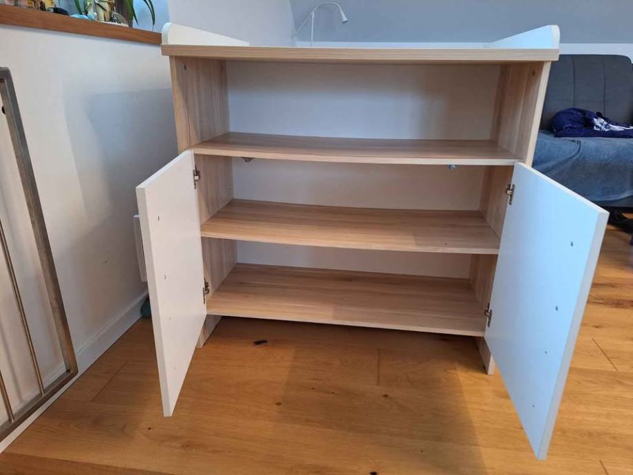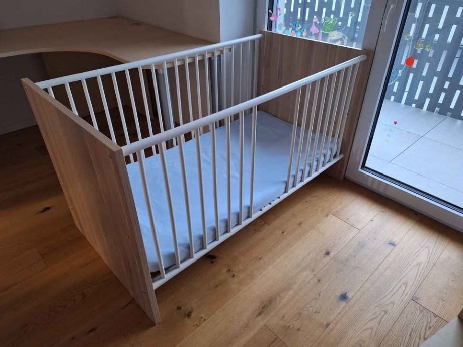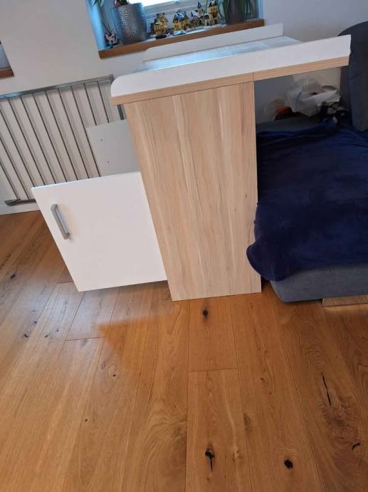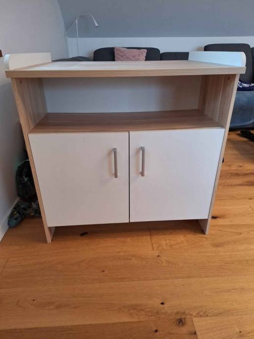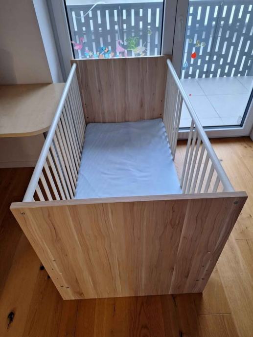 Prodam komplet sobo za novorojenčka v brezhibnem stanju, ki vsebuje posteljico z vzmetnico 140 x 70 cm, možnost več stopenj višine vzmetnice in odstranljive prečke, da starejši otrok lahko sam zleze v posteljico, previjalna miza z mehkim zapiranjem dimenzije 90 x 92 cm (š x v) in omaro z mehkim zapiranjem in policami dimenzije 80 x 53 x 183 cm (š x g x v). Zravne vključeno: vzmetnica 140 x 70 cm, Racman zaščita vzmetnice (lulanje), povšter, odejica, komplet posteljnina, stranska zaščita itd. Posteljico smo razstavili, ostalo se odpelje sestavljeno. Sobica se nahaja v Dragočajni. Za informacije sem na voljo na 041 576 875.
